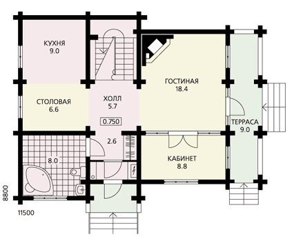 Проект деревянного дома из оцилиндрованного бревна «О-52»