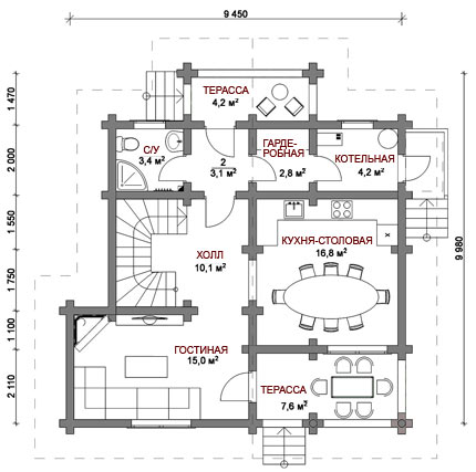 Проект дома из бревна оцилиндровки «О-80»
