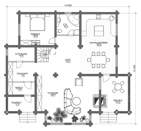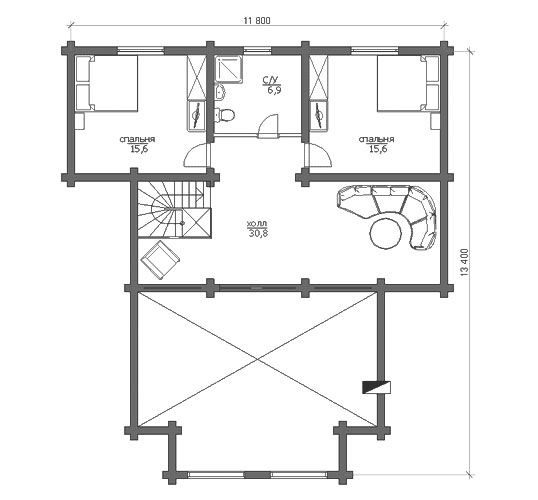 Проект коттеджа из оцилиндрованного бревна «О-143»