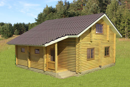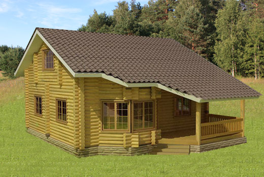 Популярный проект деревянного дома из оцилиндрованного бревна. Эркер и примыкающая к нему терраса придает современный стиль этому деревянному бревенчатому дому.