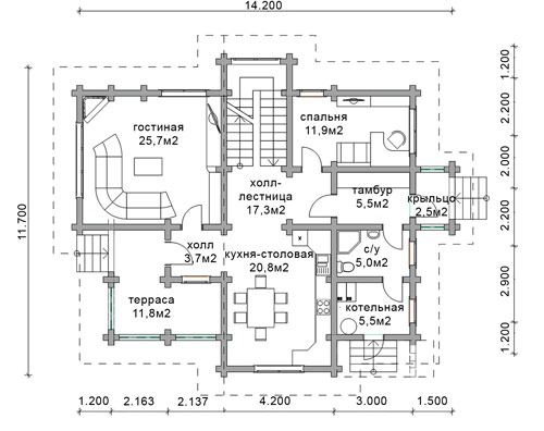 Проект дома из бревна «О-95»