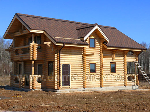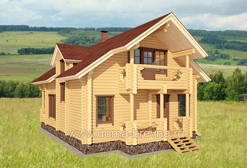 Удачное решение, сочетающее в себе практичность архитектурно-планировочного решения и традиционность облика добротного бревенчатого дома. Существуют варианты этого дома с площадью от 130 до 190 м.кв.